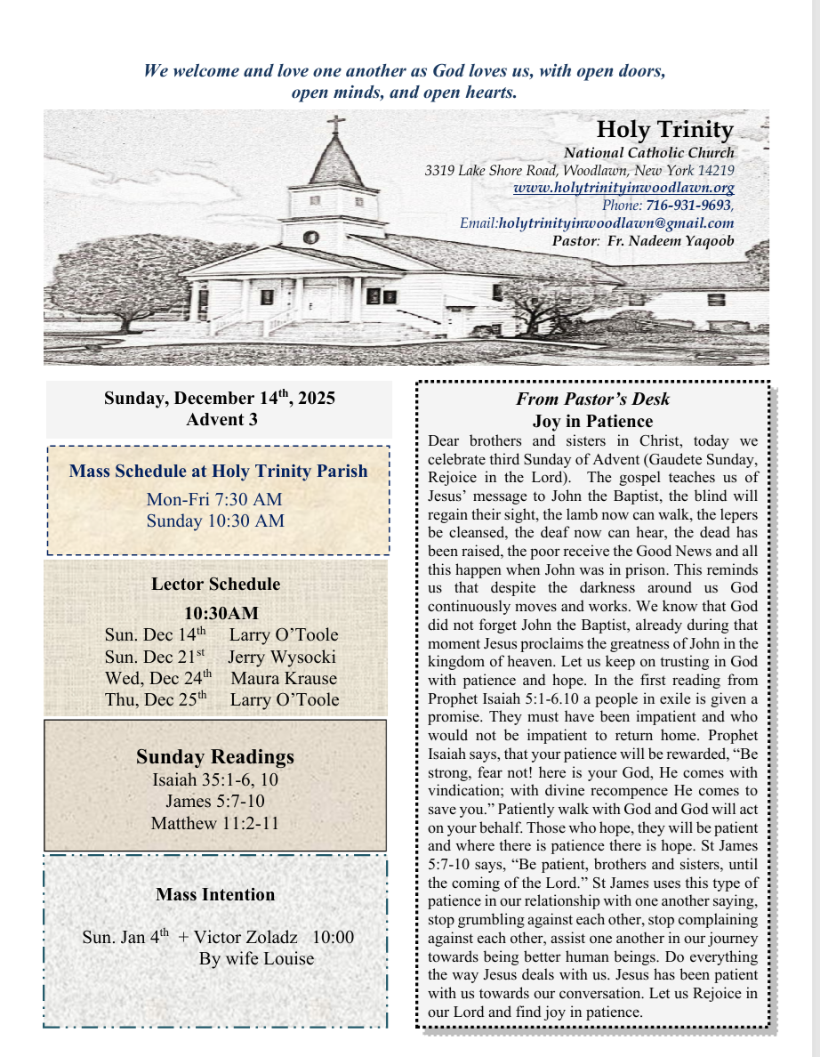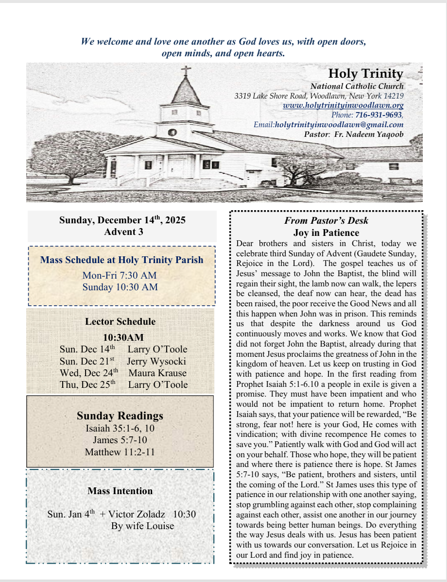Our doors are open to all and you are welcome to join us for Holy Mass and experience the presence of our Lord and Savior Jesus Christ in your life.