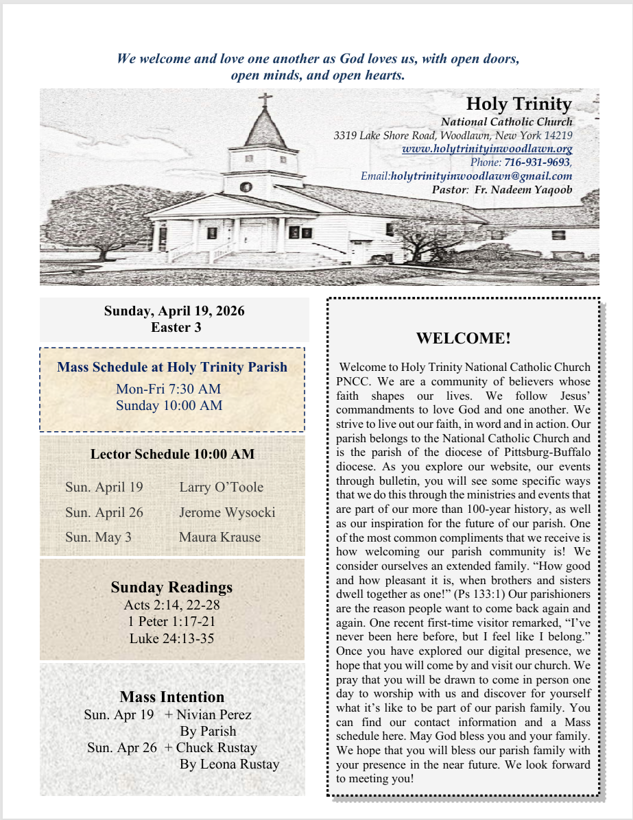 Our doors are open to all and you are welcome to join us for Holy Mass and experience the presence of our Lord and Savior Jesus Christ in your life.