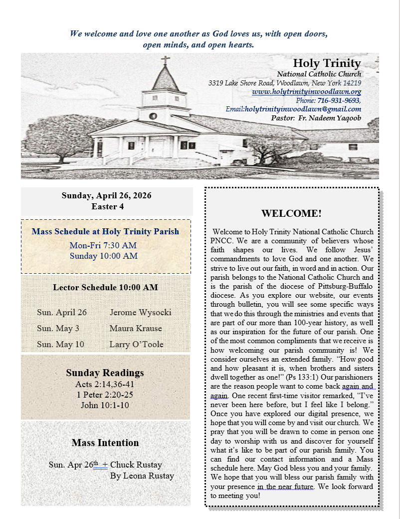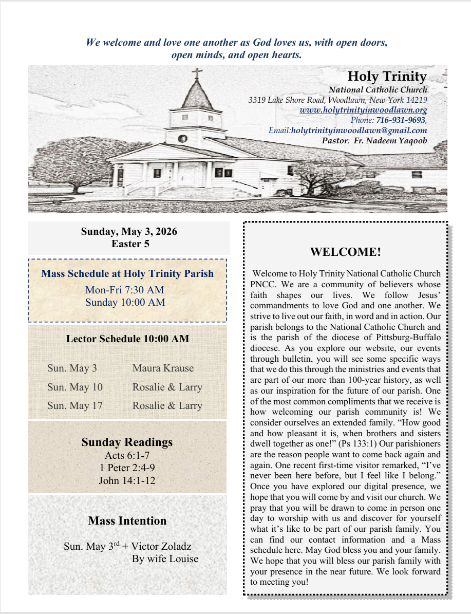 Our doors are open to all and you are welcome to join us for Holy Mass and experience the presence of our Lord and Savior Jesus Christ in your life.