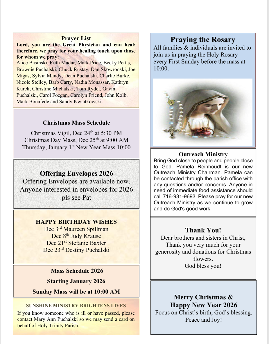Nativity of Our Lord Dec. 25th 9:00 AM
